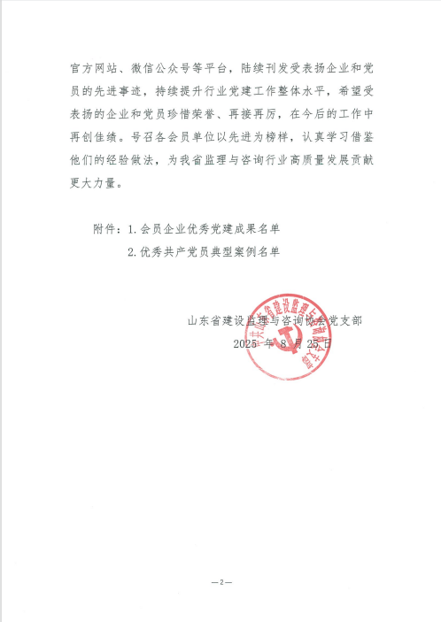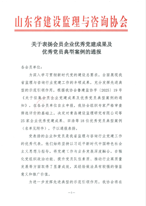 喜報(bào)!濟(jì)南監(jiān)理榮獲山東省建設(shè)監(jiān)理與咨詢協(xié)會(huì)“會(huì)員優(yōu)秀企業(yè)黨建成果”及“優(yōu)秀黨員典型案例”通報(bào)表揚(yáng)